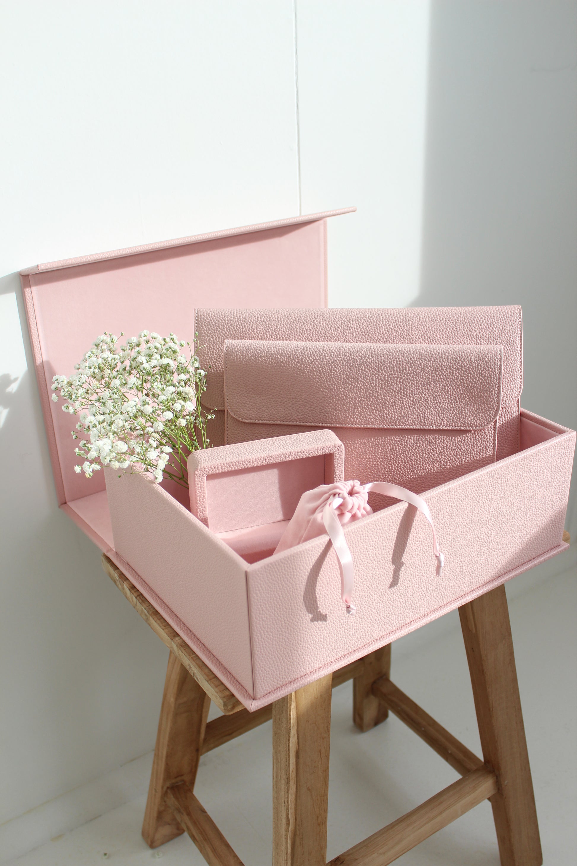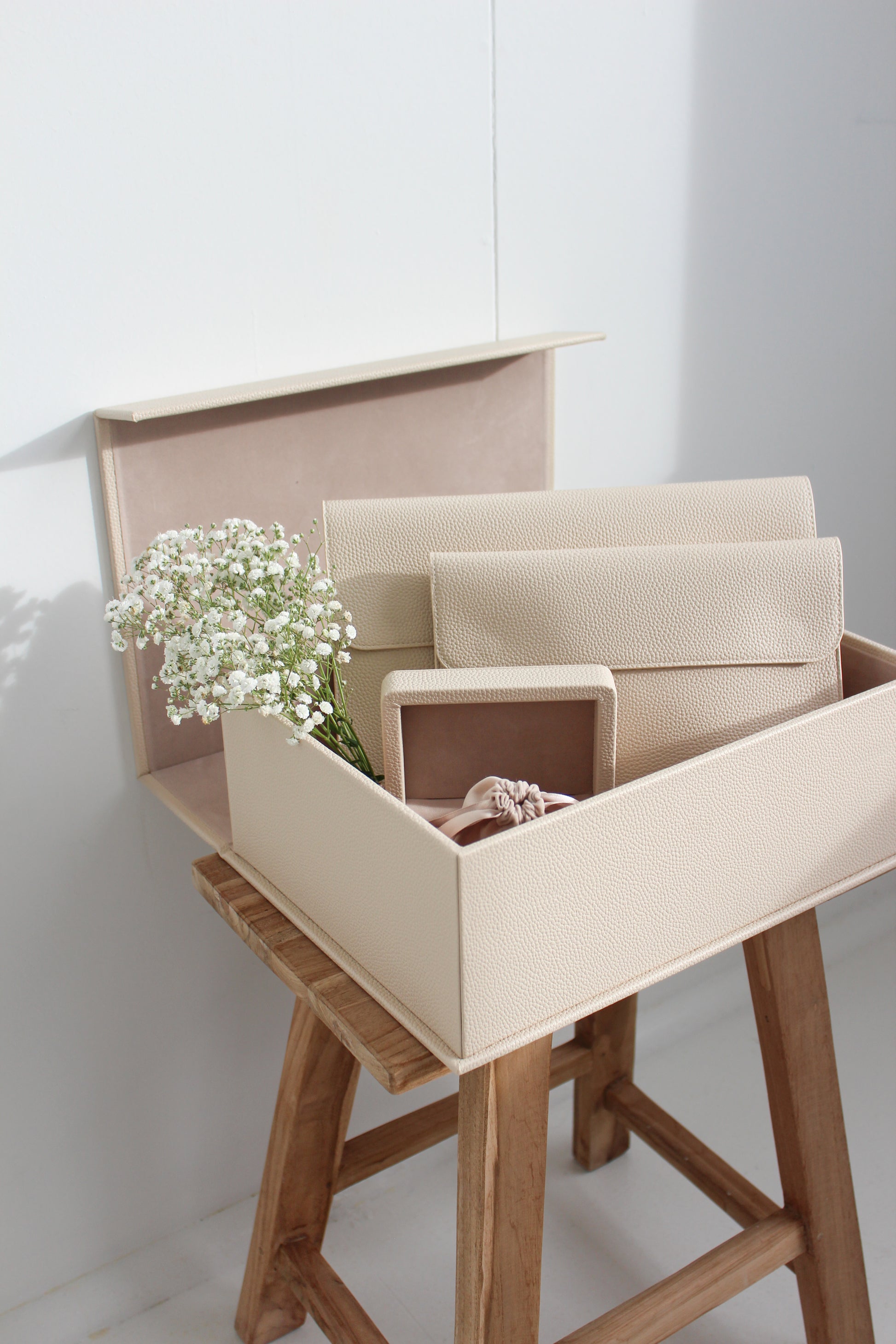 This thoughtfully curated collection includes our signature Large Box, Small Box, Large Envelope, Small Envelope, and Small Bag — each piece designed to honour life's meaningful details. From first notes to final letters, baby bracelets to wedding petals, every item offers a dedicated home for the mementos that shape your story.